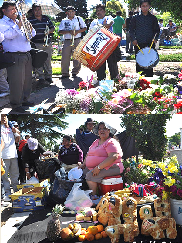 - Las mesas son desarmadas al mediodía, parte de lo ofrendado es repartido entre familiares y vecinos, parte es cargado para llevar al cementerio donde será compartido alrededor de la tumba del difunto y otras familias asistentes al cementerio