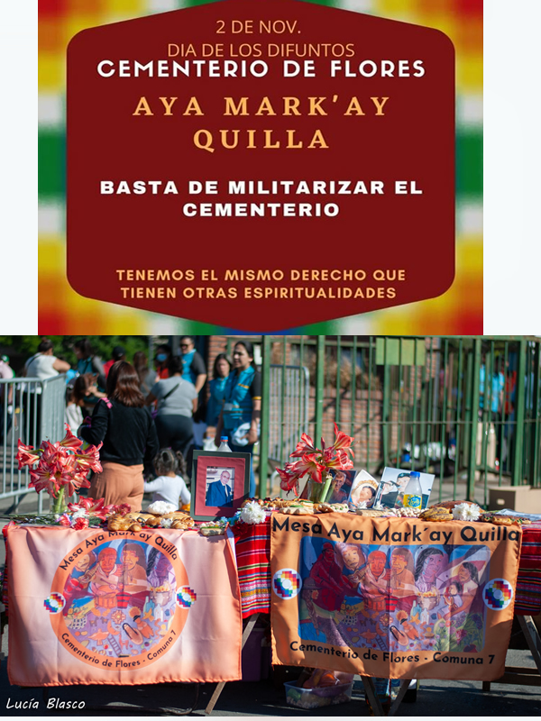 El Cementerio de Flores, ubicado en la zona sur de la ciudad, es donde entierran sus difuntos las familias que viven en los barrios y villas lindantes. Entre ellas, las familias de origen andino que ya suman varias generaciones de residencia en la ciudad, posible de datar desde mediados del siglo pasado. Desde este arraigo y dados los ciclos naturales de vida y muerte, transcurridas varias décadas estas familias comenzaron a recrear una de las ceremonias esenciales de los pueblos y naciones andinas, de carácter comunitario familiar: el Aya Markay Quilla