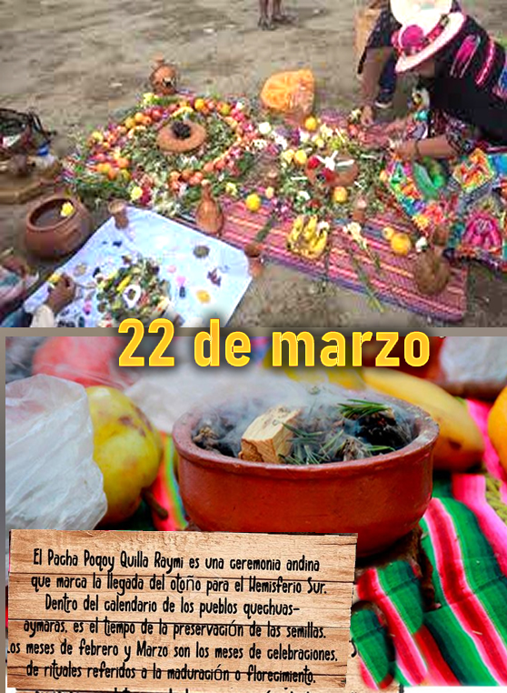 Pacha Poqoy Raymi Equinoccio de otoño. Fiesta de la madurez. Se inicia la introducción de las niñas y niños a la adolescencia.